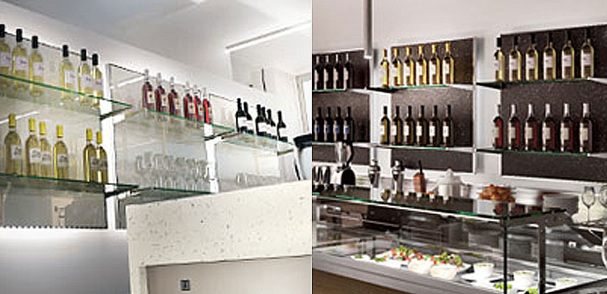 Konstrukcija izrađena od bijelog slikanog lima sa 4 fluorescentne svijetiljke s elektronskim prigušnicama. Prednji panel od melamina može biti obložen sa različitim materijalima: ogledalom, obojanim melaminom, laminatom ili može biti lakiran u svim RAL bojama. Okvir je izrađen od sjajnog aluminija sa stalcima za postavljanje dviju staklenih ili laminat polica. Linija KUADRO je dostupna u jedinicama dužine 1000 i 1250 mm.
