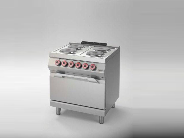 - plinski štednjaci sa plamenicima od 3.5, 5 i 8 kW, sa plinskom ili električnom pećnicom GN 2/1